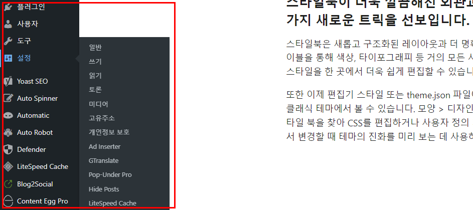 워드프레스 사용을 위해 기본 메뉴 사용법과 설정 가이드입니다.